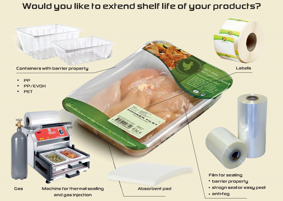 In order to increase shelf life and maintain its taste, smell, colour and nutritional value as well as overall look of products without additives, in compliance with ISO, HACCP, IFS, BRC standards, it is the best to use packaging in modified atmosphere (MAP).